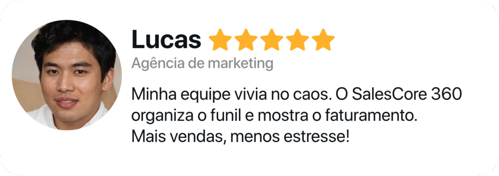 O SalesCore 360™ qualifica seus leads, centraliza sua gestão e otimiza seu atendimento, entregando lucros consistentes e escalabilidade. Tudo em um único sistema, a partir de R$42,00 por dia.